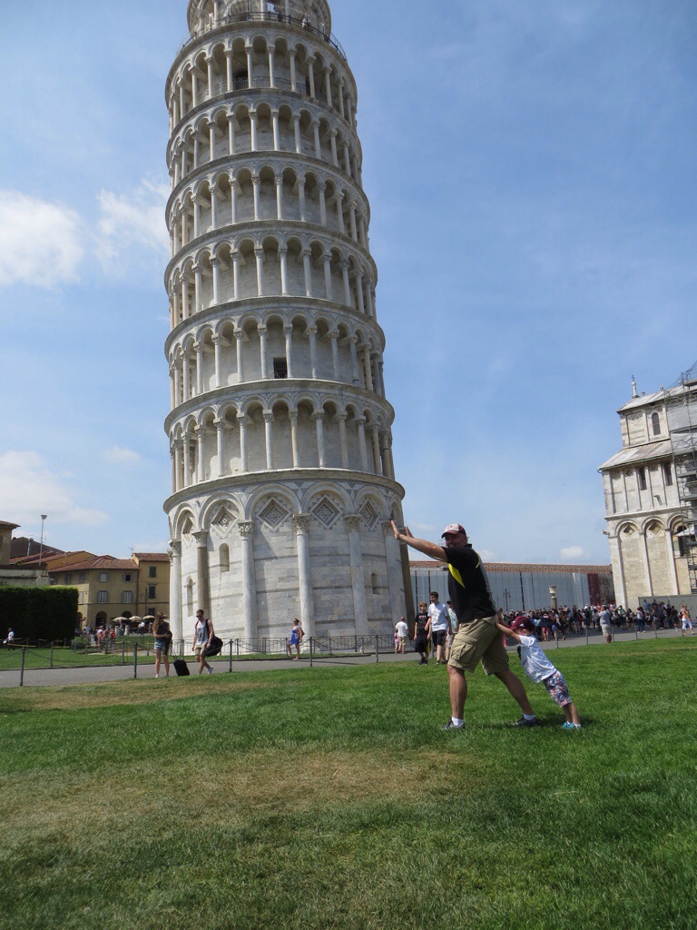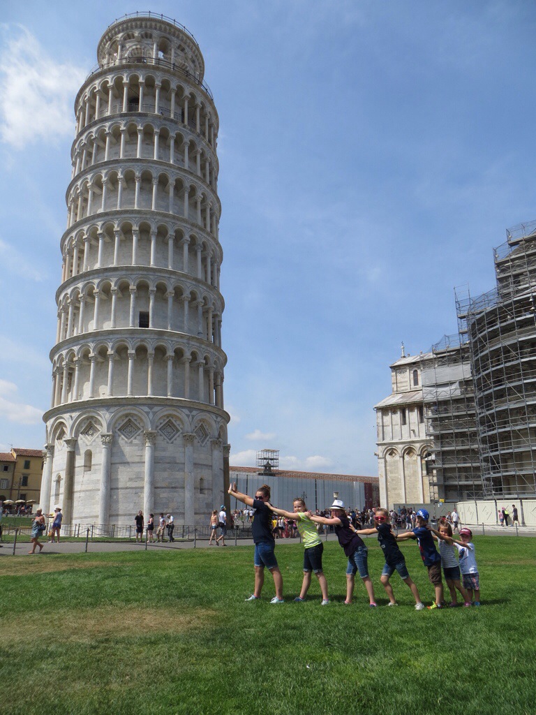 Two nights in Venice then a train ride over to Pisa to see the Leaning Tower. We felt very Amazing Raceish hanging out on top of our backpacks at the train station before we left Venice. A quick afternoon in Pisa then we flew home which included most of the family climbing the tower while some of us stayed at the bottom–based on age–, a taxi driver nearly running over a Russian tour group and some very cold slushies on a hot afternoon.
