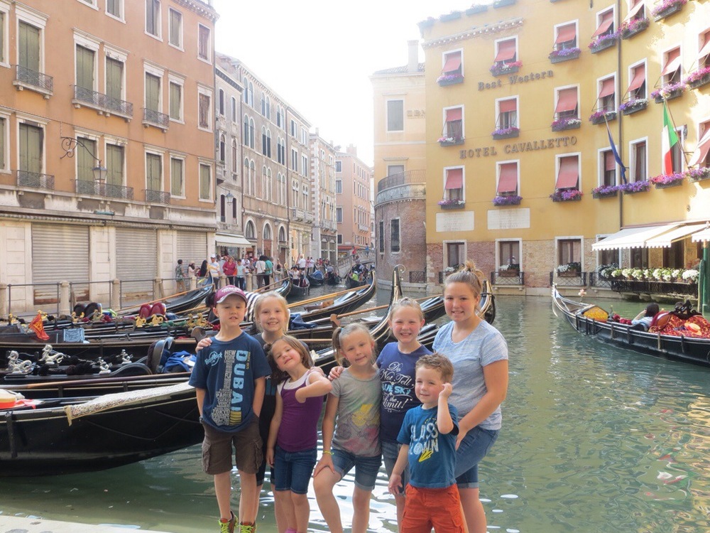 We started out the weekend in Venice. What a lovely city! Now having said that I think it would be much more charming and romantic without kids and NOT in the summertime during tourist season. I have seen The Bachelorette taking 7 kids to Venice is nothing like that at all, just saying.