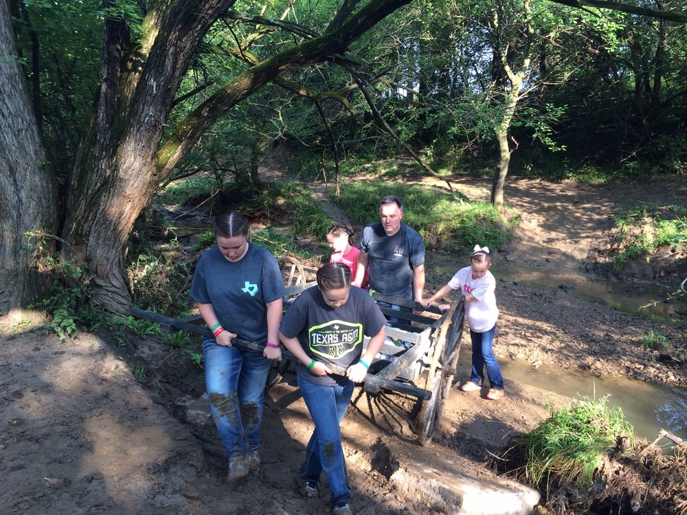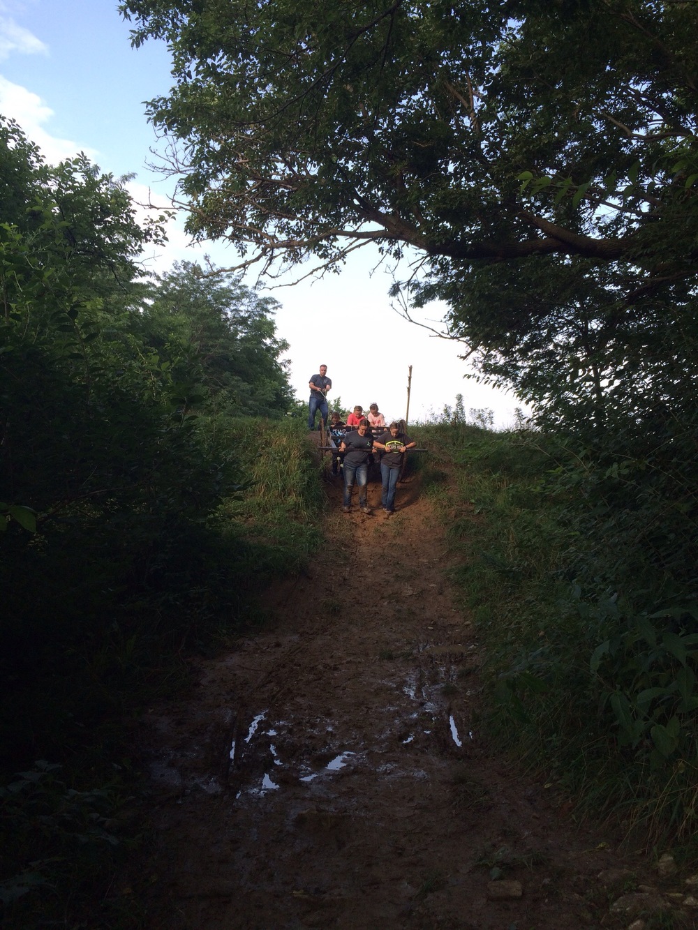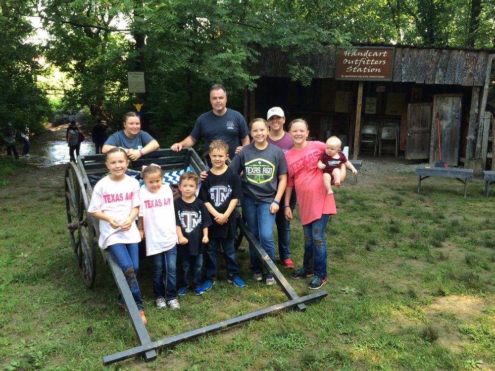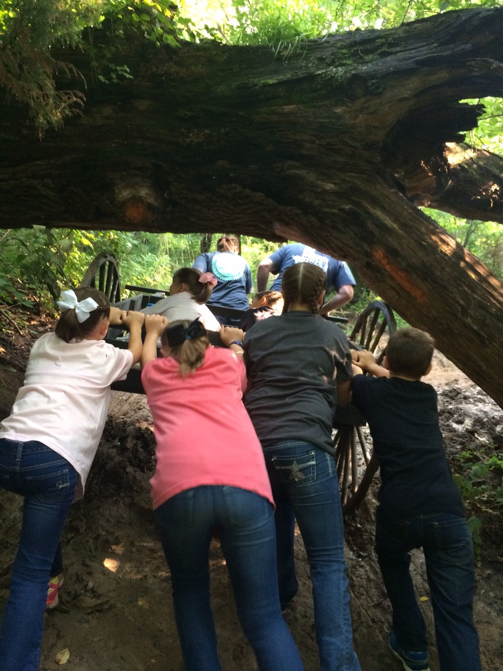We had a fantastic time walking the streets of Nauvoo and seeing how the early Latter-Day Saints lived before they were driven from their homes in the dead of winter and forced to leave everything they owned behind just to worship freely. We took the opportunity to participate in a family handcart trek. We had signed up for the two mile route but because of weather and safety issues that route was closed. So we set out on the 1 mile route and before we knew it we were pushing a handcart through a stream and up a muddy embankment. It took about 10 minutes before Holli and Mark jumped out of the handcart because the trail was so muddy their weight made it too difficult to push/pull. Which was fine since they both wanted to help anyway. By the time we finished everyone was muddy, sweaty and tired it was everything I hoped it would be for the family…….a small glimpse at the struggles of those who paved the way for us.